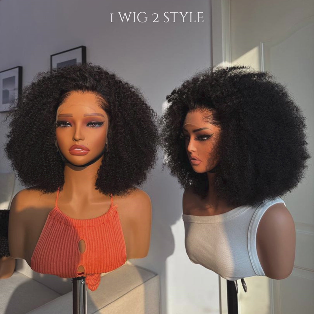 Perruque Afro Queen « Yuri » - 100 % cheveux naturels - Lace Frontale HD 13*4 2 en 1